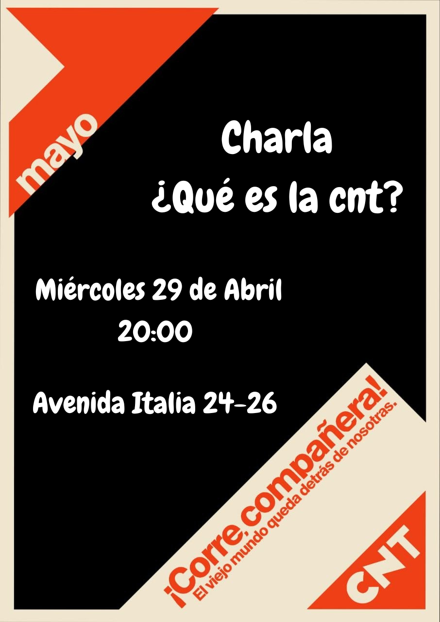 En la charla de mañana miércoles 29 de Abril a las 20:00 daremos las claves de nuestro sindicato. !Pásate a conocernos!